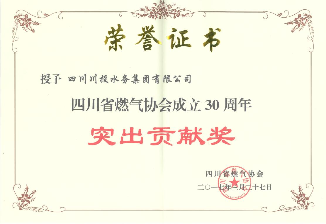 四川省燃?xì)鈪f(xié)會(huì)成立30周年突出貢獻(xiàn)獎(jiǎng)
