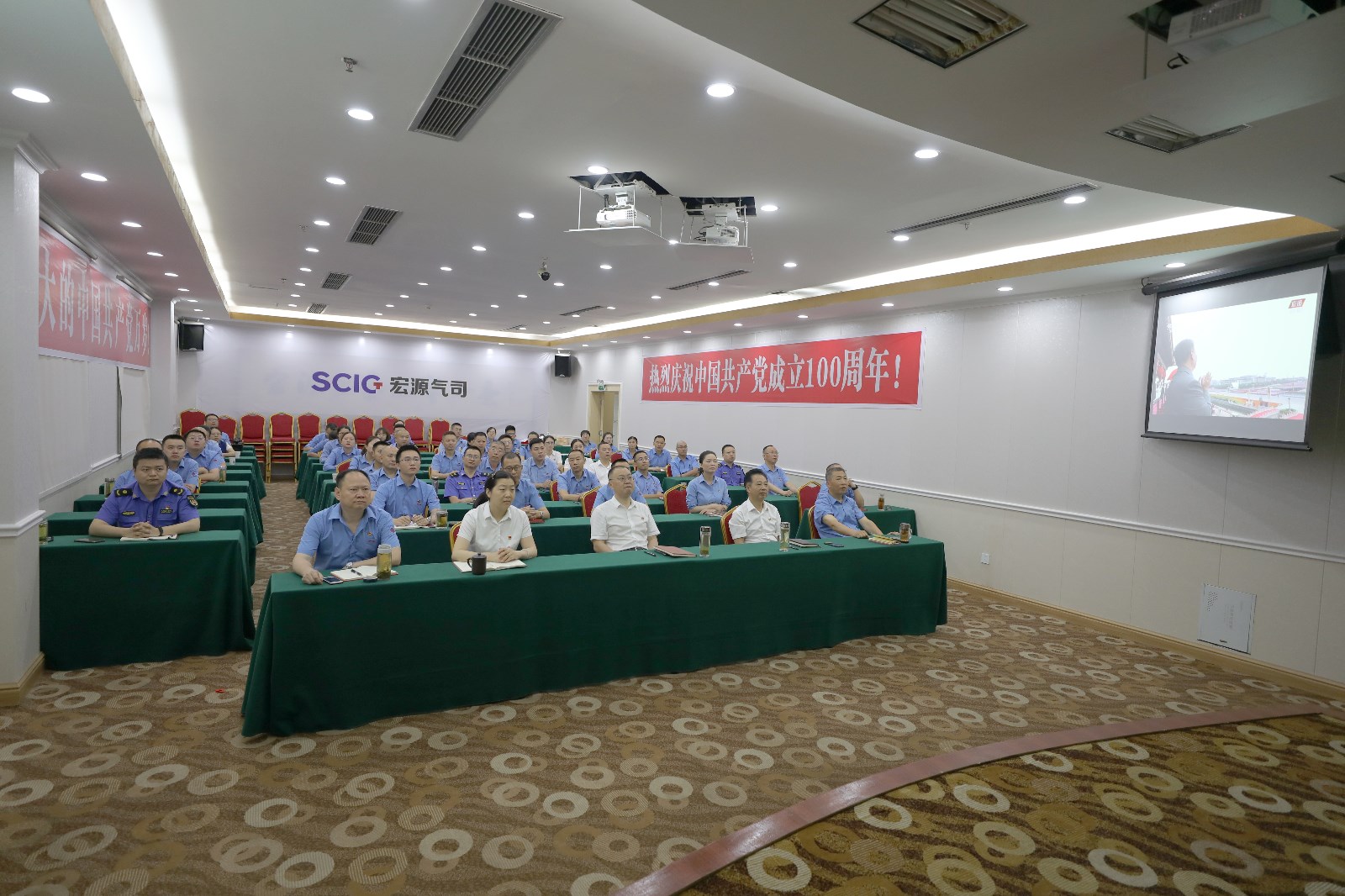 2021年7月1日,慶祝中國共產(chǎn)黨成立100周年大會(huì)在北京天安門廣場隆重舉行。中共中央總書記、國家主席、中央軍委主席習(xí)近平發(fā)表重要講話。宏源公司黨員干部及部分員工代表共計(jì)54人在宏源大酒店11樓會(huì)議室集中收聽收看了大會(huì)實(shí)況直播,學(xué)習(xí)領(lǐng)會(huì)習(xí)近平總書記的重要講話精神。