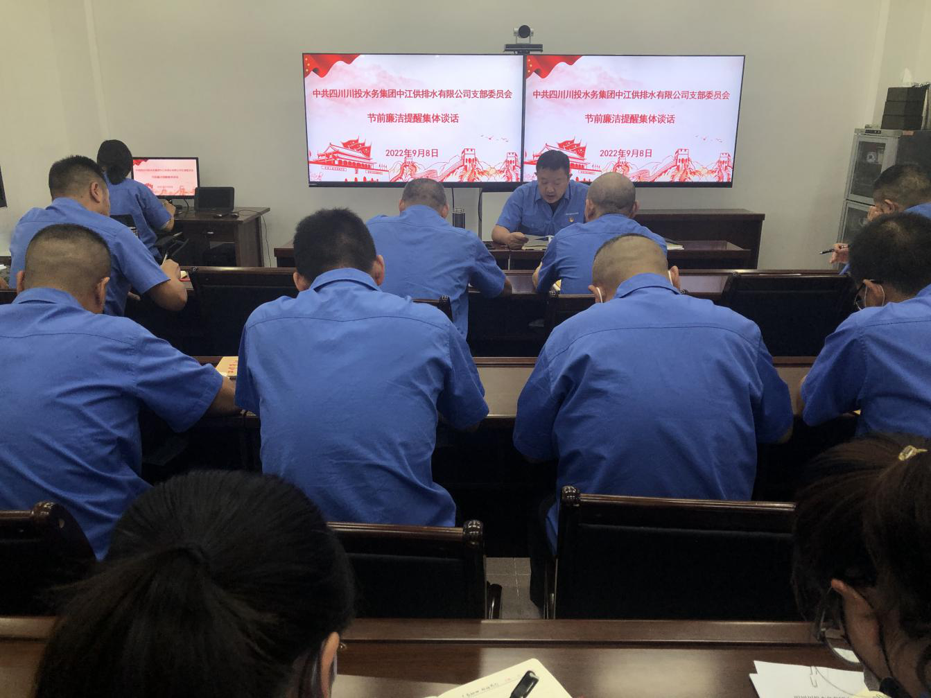 為深入推進黨風廉政建設,加強廉政風險防控,增強黨員干部廉潔自律意識,積極營造風清氣正的良好環(huán)境。9月8日下午,中江水司黨支部開展廉潔教育主題黨日活動,支部全體黨員、入黨積極分子、公司班組以上管理人員、廉潔關鍵崗位人員等四十余人參加了活動。