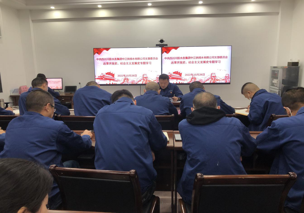 10月28日下午,中江水司黨支部組織召開黨員大會,專題學(xué)習(xí)“改革開放史、社會主義發(fā)展史”,會議由黨支部書記、董事長、總經(jīng)理朱禹主持,支部黨員、入黨積極分子、公司班組以上管理人員共計31人參加了學(xué)習(xí)活動。