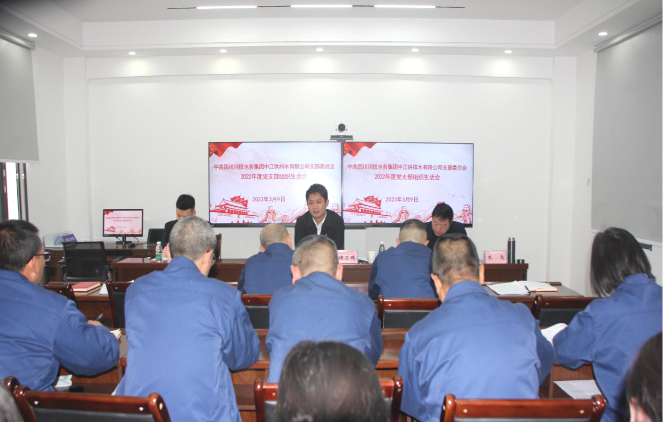 2023年3月9日,中江水司黨支部組織召開2022年度組織生活會暨民主評議黨員大會,會議由黨支部書記朱禹主持,支部16名黨員同志參加會議。川投水務(wù)集團副總經(jīng)理譚衛(wèi)鵬率黨群紀檢部工作人員進行了現(xiàn)場督導(dǎo)。