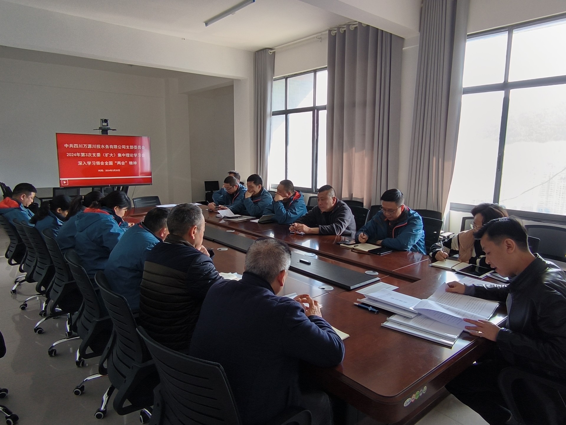 3月20日下午,萬源水司組織召開支委(擴大)學(xué)習(xí)會議,學(xué)習(xí)貫徹習(xí)近平總書記在全國“兩會”期間的重要講話和全國“兩會”精神。公司黨支部書記、執(zhí)行董事、總經(jīng)理李至彬主持會議,公司領(lǐng)導(dǎo)班子成員、中層干部參加了會議。