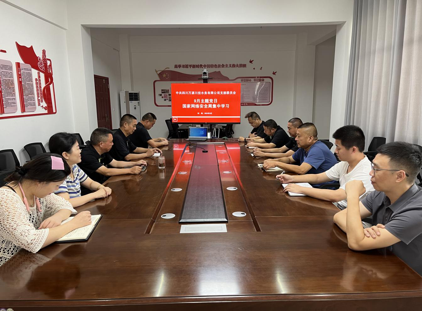為積極響應(yīng)國家關(guān)于網(wǎng)絡(luò)安全宣傳周的號召,深入貫徹“網(wǎng)絡(luò)安全為人民,網(wǎng)絡(luò)安全靠人民”的重要理念,提升干部職工網(wǎng)絡(luò)安全意識,加強(qiáng)個(gè)人信息保護(hù),防范網(wǎng)絡(luò)安全風(fēng)險(xiǎn)。萬源水司于9月13日上午組織支部黨員、中層以上管理人員、各部門員工代表共計(jì)26余人開展“網(wǎng)絡(luò)安全為人民,網(wǎng)絡(luò)安全靠人民”主題黨日活動(dòng),支部書記、執(zhí)行董事、總經(jīng)理李至彬主持會議。
