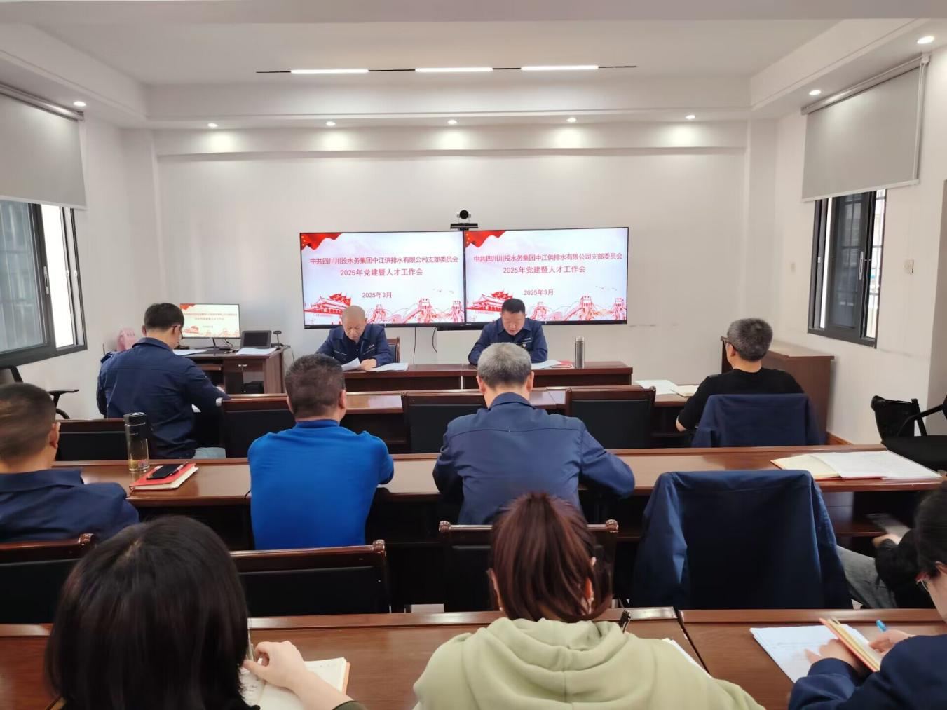 2025年3月27日,中江公司組織召開2025年黨建暨人才工作會,集中學(xué)習(xí)習(xí)近平總書記關(guān)于黨的建設(shè)、干部隊伍建設(shè)的重要論述,傳達(dá)四川發(fā)展、四川省生態(tài)環(huán)保集團(tuán)、川投水務(wù)集團(tuán)黨建暨人才工作會精神,通報公司2024年度黨建暨人才工作情況,并對2025年黨建暨人才工作進(jìn)行部署。