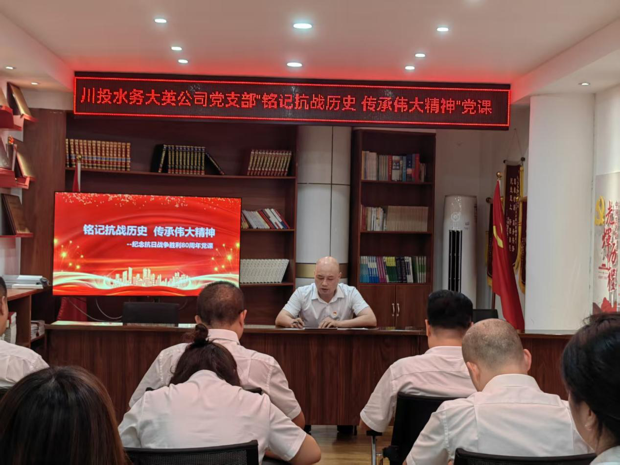 在紀念中國人民抗日戰(zhàn)爭暨世界反法西斯戰(zhàn)爭勝利80周年之際,9月25日,川投水務大英公司黨支部書記王文川以“銘記抗戰(zhàn)歷史 傳承偉大精神”為主題,為全體黨員講授專題黨課,推動紅色基因融入崗位實踐。