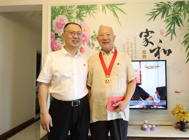 在老黨員劉大榮家里,李旭東關(guān)切地詢問了劉老和老伴的身體狀況及生活現(xiàn)狀,親手為劉大榮同志佩戴上由中共中央頒發(fā)的“光榮在黨50年”紀念章并送上慰問金,祝福老人家身體安康、健康長壽。80多歲高齡的老黨員劉大榮精神抖擻,他用樸素的話語表達了自己的感激之情:“感謝黨的恩情,感謝集團對我們的關(guān)懷!”