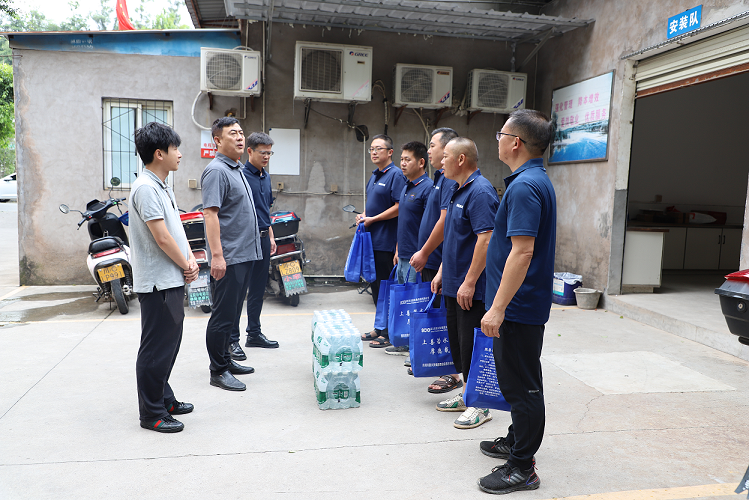 支部書記、執(zhí)行董事龔慶一行深入公司廠區(qū)、安裝維修隊及客戶服務(wù)中心,為一線職工送去了藿香正氣液、板藍根、風(fēng)油精、葡萄糖口服液、礦泉水等防暑降溫物資,與職工們親切交談,詳細詢問他們的工作和生活情況。同時囑咐大家要注意勞逸結(jié)合,合理安排工作時間,做好防暑降溫措施,并強調(diào)當前正值汛期,生產(chǎn)廠區(qū)要做好防汛措施,加強雷電天氣設(shè)施設(shè)備安全檢查,確保正常運行。