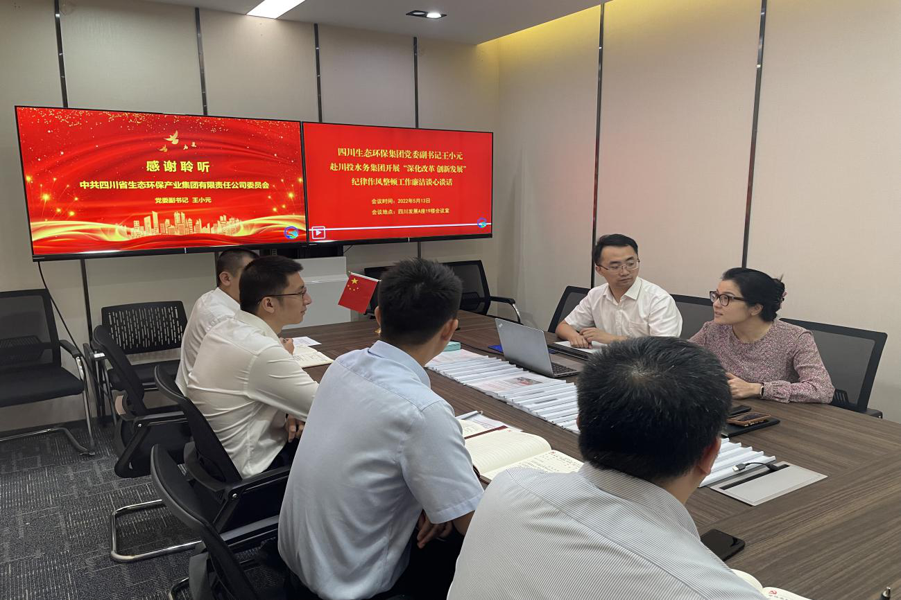 5月13日,按照四川發(fā)展黨委、四川生態(tài)環(huán)保集團(tuán)黨委“深化改革、創(chuàng)新發(fā)展”紀(jì)律作風(fēng)整頓工作總體安排,為持續(xù)推進(jìn)紀(jì)律作風(fēng)整頓工作走深走實(shí),四川生態(tài)環(huán)保集團(tuán)黨委副書記王小元赴川投水務(wù)集團(tuán)開展“深化改革、創(chuàng)新發(fā)展”紀(jì)律作風(fēng)整頓專項(xiàng)督導(dǎo)檢查工作暨講授“轉(zhuǎn)作風(fēng) 促發(fā)展”持之以恒加強(qiáng)作風(fēng)建設(shè)專題黨課,川投水務(wù)集團(tuán)黨委委員、副總經(jīng)理嚴(yán)斯亮,副總經(jīng)理譚衛(wèi)鵬,黨群紀(jì)檢工作部部長(zhǎng)李至彬陪同檢查。
