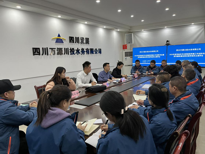 1月9日,川投水務(wù)集團(tuán)副總經(jīng)理譚衛(wèi)鵬率考評(píng)工作組一行赴萬(wàn)源水司開展2023年度黨組織書記抓基層黨建工作述職評(píng)議暨黨風(fēng)廉政建設(shè)責(zé)任制考核民主測(cè)評(píng)工作。萬(wàn)源水司黨支部書記、執(zhí)行董事、總經(jīng)理李至彬及領(lǐng)導(dǎo)班子、中層管理干部、職工代表參加會(huì)議。