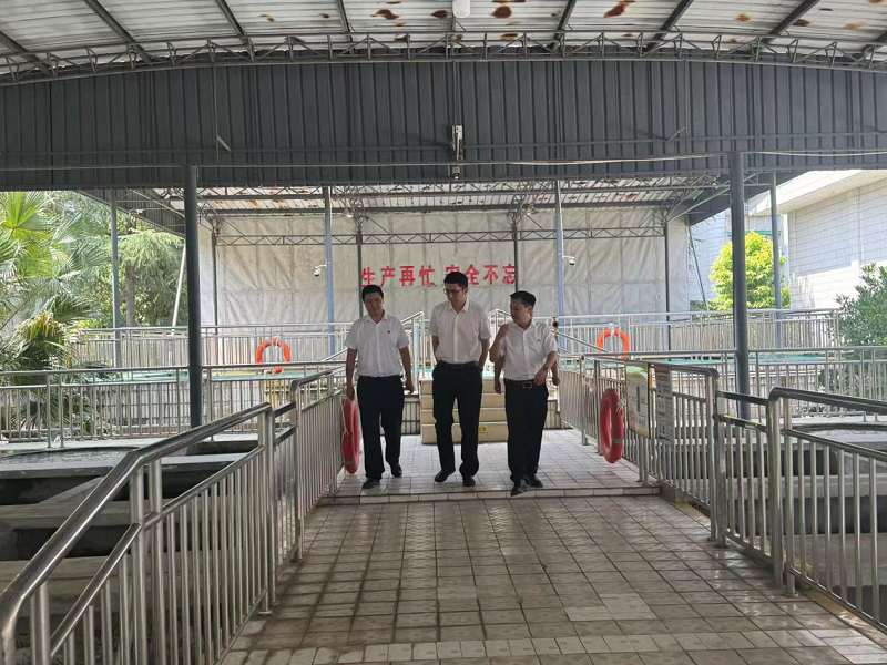 嚴斯亮一行首先前往制水廠區(qū)、化驗室了解當(dāng)前水源調(diào)度、水廠運行、供水能力等情況。隨后,前往龍灘村取水口實地查看取水口防洪措施現(xiàn)狀,對射洪水司當(dāng)前防汛減災(zāi)工作采取的提前保障措施和供水保障給與了充分肯定。