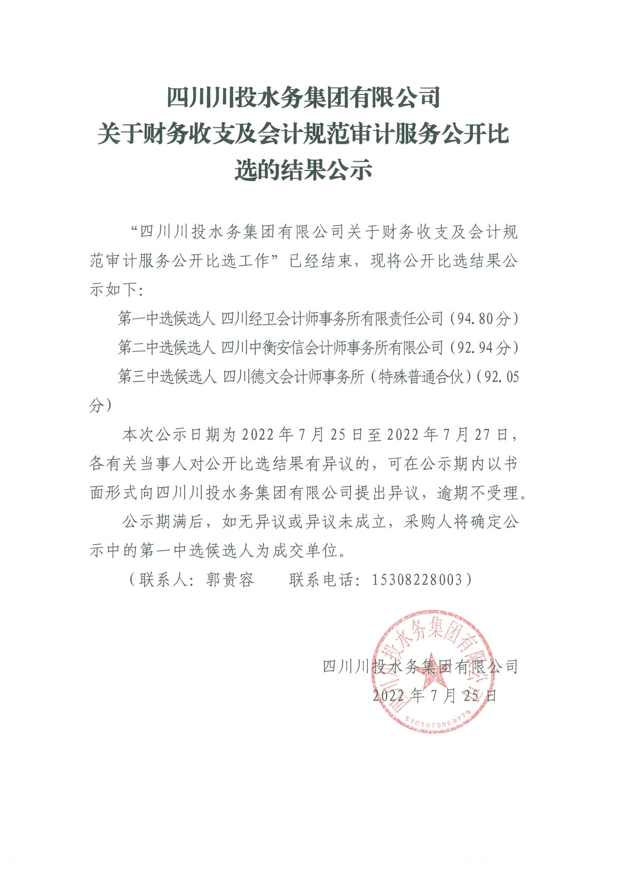 上一條:四川川投水務(wù)集團(tuán)有限公司關(guān)于選聘財務(wù)收支及會計規(guī)范審計服務(wù)中介機(jī)構(gòu)的公告(第二次)