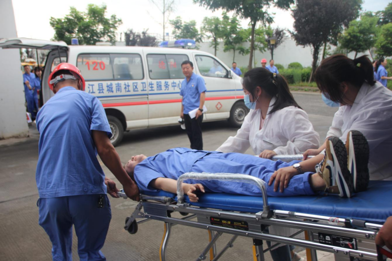 上午8:40,隨著演練總指揮朱禹一聲令下,演練正式開始。參演隊伍迅速集結(jié),到達演練地點按照預(yù)先設(shè)置的演練科目及流程開展演練。整個演練過程緊張有序,演練環(huán)節(jié)銜接緊密,參演人員分工明確,任務(wù)清晰,行動迅速,并在中江縣城南衛(wèi)生服務(wù)中心的大力支持下,圓滿完成了設(shè)置的三場模擬事故演練任務(wù)。通過本次演練,檢驗了應(yīng)急預(yù)案的科學(xué)性和實用性,鍛煉了隊伍,積累了實戰(zhàn)經(jīng)驗,有效提高了應(yīng)對突發(fā)事件的反應(yīng)及處置能力。