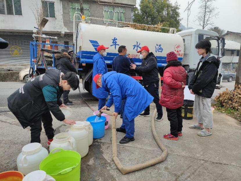 經(jīng)過多方溝通,1月5日上午,在縣住建局的協(xié)調(diào)下,公司借用園林所灑水車正式從下寺向普安送水?!按蠹铱斐鰜斫铀?!”當(dāng)聽到工作人員的呼聲后,居民們紛紛從家里出來接水,有的拎著水桶,有的拖著水管,有的扛著抽水泵.....看見漸漸灌滿的蓄水池和水桶,居民們臉上洋溢著滿意的笑容,大家紛紛說到:“感謝川投水務(wù)為我們送來飲用水,這是實(shí)實(shí)在在替我們老百姓辦實(shí)事啊!”