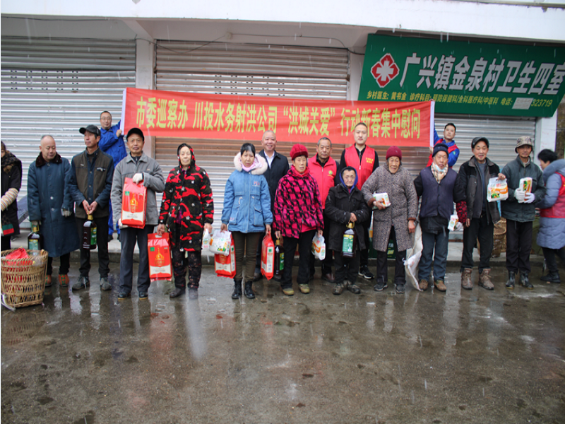 1月24日上午,川投水務(wù)射洪公司聯(lián)合射洪市委巡察辦到公司鄉(xiāng)村振興幫扶金泉村開(kāi)展“洪城關(guān)愛(ài)”行動(dòng)新春集中慰問(wèn)。公司黨支部紀(jì)檢委員、副總經(jīng)理杜剛,公司駐村干部馬千里和市委巡察辦駐村第一書(shū)記趙治輝為幫扶戶們送去了節(jié)日的慰問(wèn)和祝福。