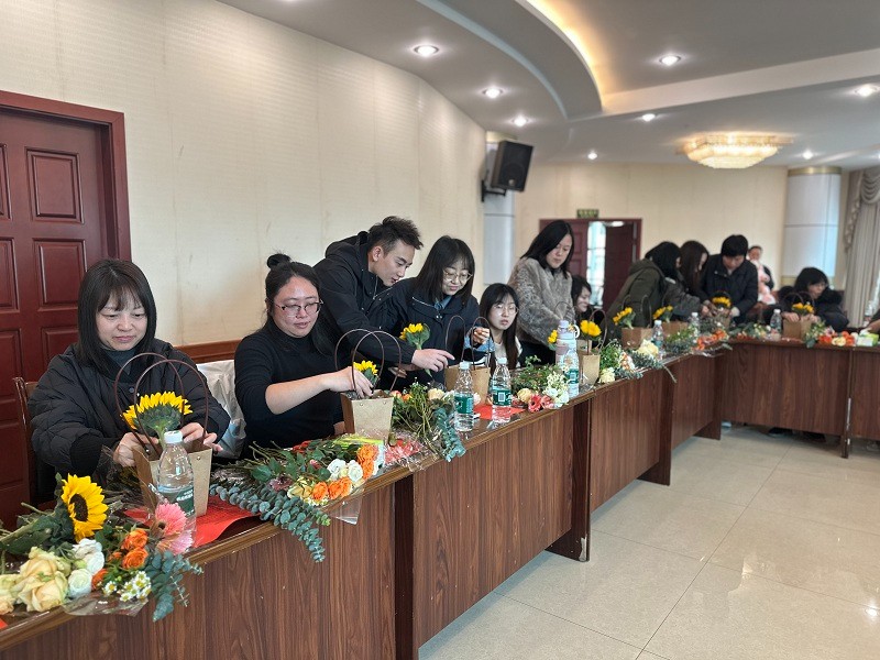 活動(dòng)現(xiàn)場(chǎng),花香四溢,氣氛溫馨。專業(yè)花藝?yán)蠋煘榕詥T工們?cè)敿?xì)講解了插花的基本技巧、花卉的寓意以及日常養(yǎng)護(hù)方法。在老師的指導(dǎo)下,大家紛紛動(dòng)手挑選花材、修剪枝葉、搭配色彩,用心創(chuàng)作屬于自己的花藝作品。每一束花都凝聚了女性員工們的巧思與創(chuàng)意,展現(xiàn)了她們對(duì)生活的熱愛與對(duì)美的追求。