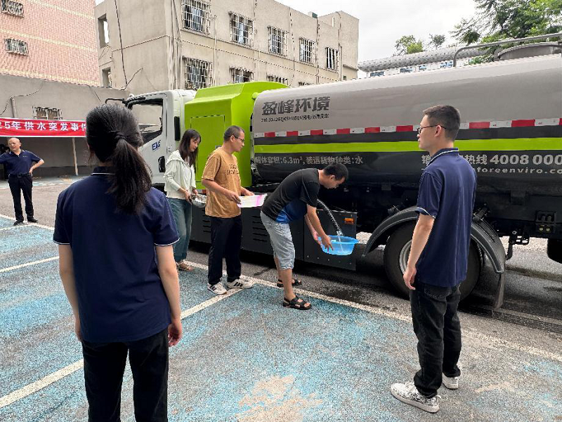 演練模擬取水泵房水源井受雨水侵入污染,導(dǎo)致自來(lái)水水質(zhì)出現(xiàn)異常的場(chǎng)景。公司迅速啟動(dòng)《供水突發(fā)事件應(yīng)急預(yù)案》一般供水突發(fā)事件應(yīng)急響應(yīng),各應(yīng)急處置小組依照預(yù)案迅速開(kāi)展處置。供水安全處置組趕赴取水泵房,關(guān)停送水機(jī)泵,抽排污水,清洗消毒,控制污染源頭;應(yīng)急搶險(xiǎn)組打開(kāi)消防栓沖洗供水管網(wǎng),減少污染對(duì)供水系統(tǒng)的影響;后勤保障組緊急聯(lián)系送水車輛,調(diào)配資源,向受影響小區(qū)配送生活用水,保障居民基本生活用水需求;通訊聯(lián)絡(luò)組及時(shí)向上級(jí)部門報(bào)告突發(fā)事件詳情、應(yīng)急處置措施及進(jìn)展,實(shí)時(shí)發(fā)布預(yù)警信息與停水公告,讓居民及時(shí)了解情況;水質(zhì)監(jiān)測(cè)組全程密切監(jiān)控水質(zhì),為應(yīng)急處置提供準(zhǔn)確的數(shù)據(jù)支持。
