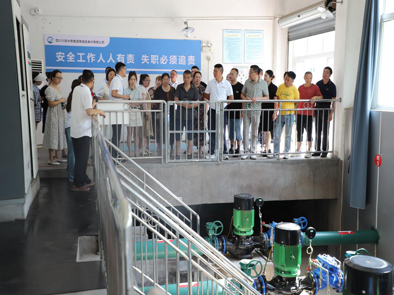 隨后,參會用戶代表頂著烈日酷暑,實地參觀了水廠的取水泵房、技改工程現(xiàn)場、加壓泵房等供水設(shè)施設(shè)備,用戶更為直觀地了解了自來水生產(chǎn)的全過程生產(chǎn)工藝流程以及在生產(chǎn)過程中的各項成本構(gòu)成。