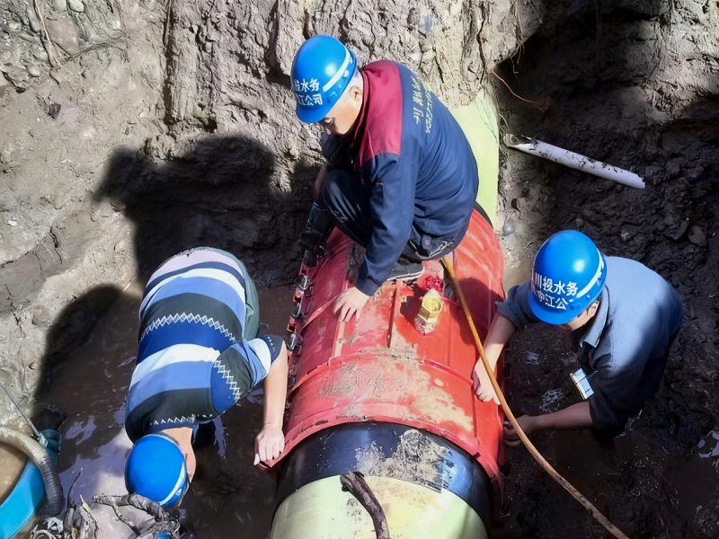 2025年10月27日,中江縣城區(qū)供水接連遭遇雙重危機。13時許,公司所屬雙河口水廠位于中金快通興隆鎮(zhèn)凱歌大道中段、向城區(qū)供水的DN450供水主管突發(fā)爆管,公司第一時間啟動應(yīng)急處置,搶修作業(yè)導(dǎo)致雙河口水廠向城區(qū)供水中斷,縣城西南片區(qū)隨即進入低壓供水狀態(tài)。正當(dāng)搶險工作緊張進行時,17時許,危機再次升級。中江縣凱江系統(tǒng)治理工程施工單位因操作失誤,不慎挖壞繼光水廠DN700出水母管。該母管作為繼光水廠的“主動脈”,損壞后直接導(dǎo)致水廠向城區(qū)供水生產(chǎn)系統(tǒng)部分中斷。