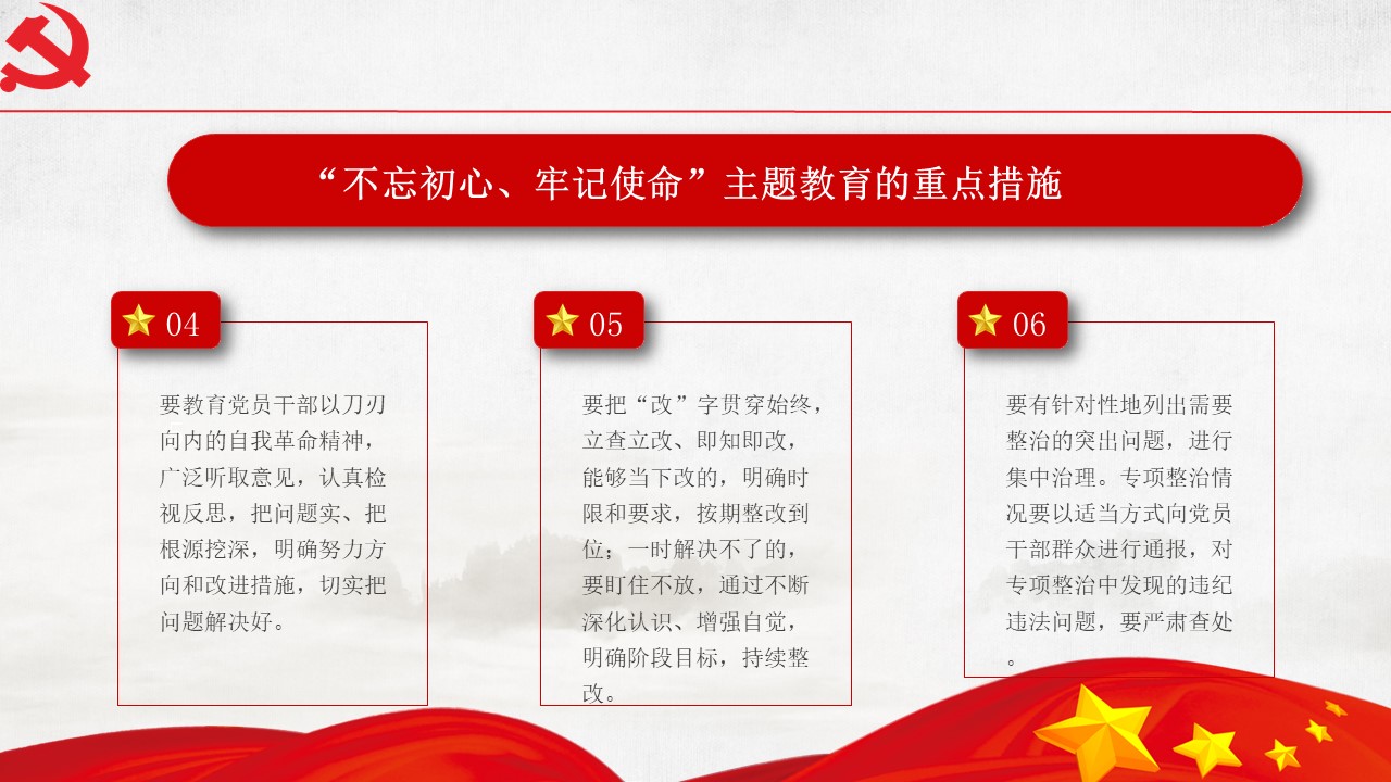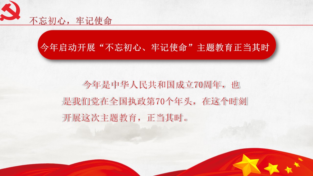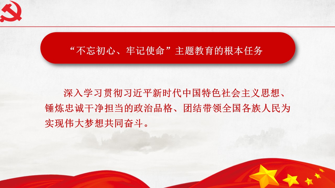 5月31日“不忘初心、牢記使命”主題教育工作會議31日在北京召開。中共中央總書記、國家主席、中央軍委主席習近平出席會議并發(fā)表重要講話。他強調,為中國人民謀幸福,為中華民族謀復興,是中國共產黨人的初心和使命,是激勵一代代中國共產黨人前赴后繼、英勇奮斗的根本動力。開展“不忘初心、牢記使命”主題教育,要牢牢把握守初心、擔使命,找差距、抓落實的總要求,牢牢把握深入學習貫徹新時代中國特色社會主義思想、...